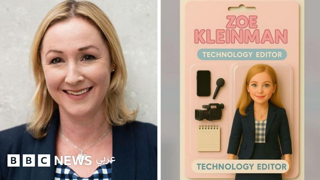 التعليق على الصورة، يسار: محررة شؤون التكنولوجيا في بي بي سي، زوي كلاينمان. يمين: دمية صنعتها لنفسها باستخدام الذكاء الاصطناعي