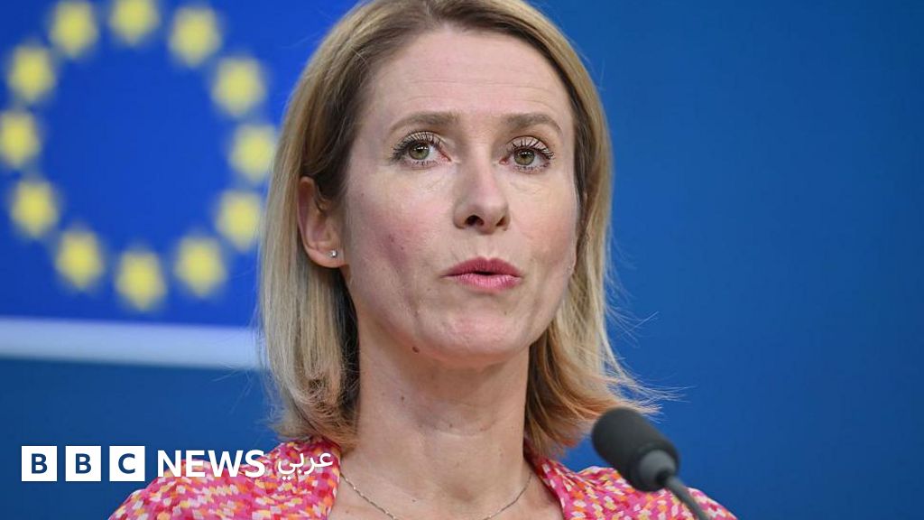 التعليق على الصورة، جاءت تصريحات كايا كالاس في مؤتمر صحفي، عقب اجتماع وزراء خارجية الاتحاد الأوروبي في بروكسل
