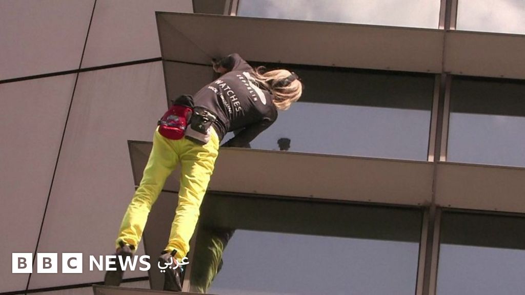 وشد الفرنسي انتباه المارة أسفل المبنى لكن الشرطة اعتقلته عندما نزل بتهمة ارباك الوضع العام.