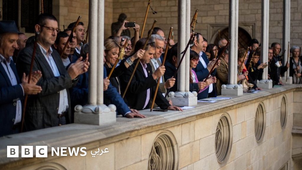 مؤيدو استفتاء كتالونيا يتظاهرون دعما لرؤساء البلديات