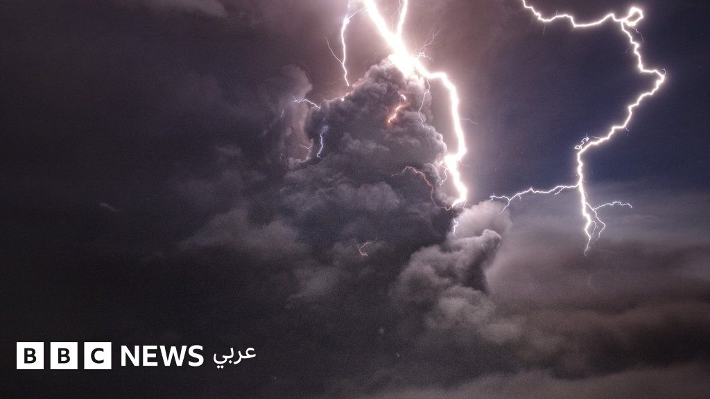 ومع ثورة البركان، شوهدت ومضات من البرق حول سحب الرماد.