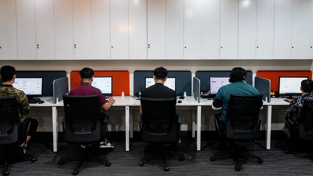 (Picture: Customer agents sit behind computers on the AI training in Taguig City, Metro Manila, Philippines. Credit: Getty Images)