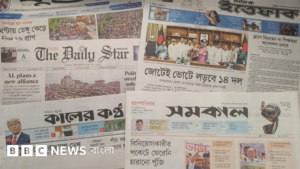 সংবাদ পত্রিকার শিরোনাম, পাল্টা-পাল্টি কর্মসূচি যানজট, গণপরিবহন সংকট : দু’দিন ধরে ভোগান্তি রাজধানীবাসীর। এতে বলা হয়েছে, বিএনপির ‘একদফা আন্দোলনের’ পদযাত্রা এবং আওয়ামী লীগের ‘শান্তি ও উন্নয়ন’ শোভাযাত্রা ঘিরে বুধবার (১৯ জুলাই) দ্বিতীয় দিনেও বিপাকে পড়েন রাজধানীবাসী।