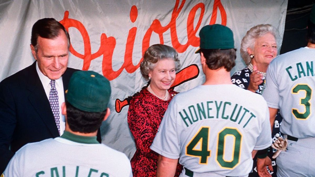 During her reign, Queen Elizabeth II attended a wide array of sporting events, including a game of 'America’s National Pastime', baseball. Whilst visiting President George HW Bush in May 1991, the Queen and Prince Philip joined the First Couple in watching a game between the Baltimore Orioles and the Oakland Athletics at Baltimore’s Memorial Stadium.