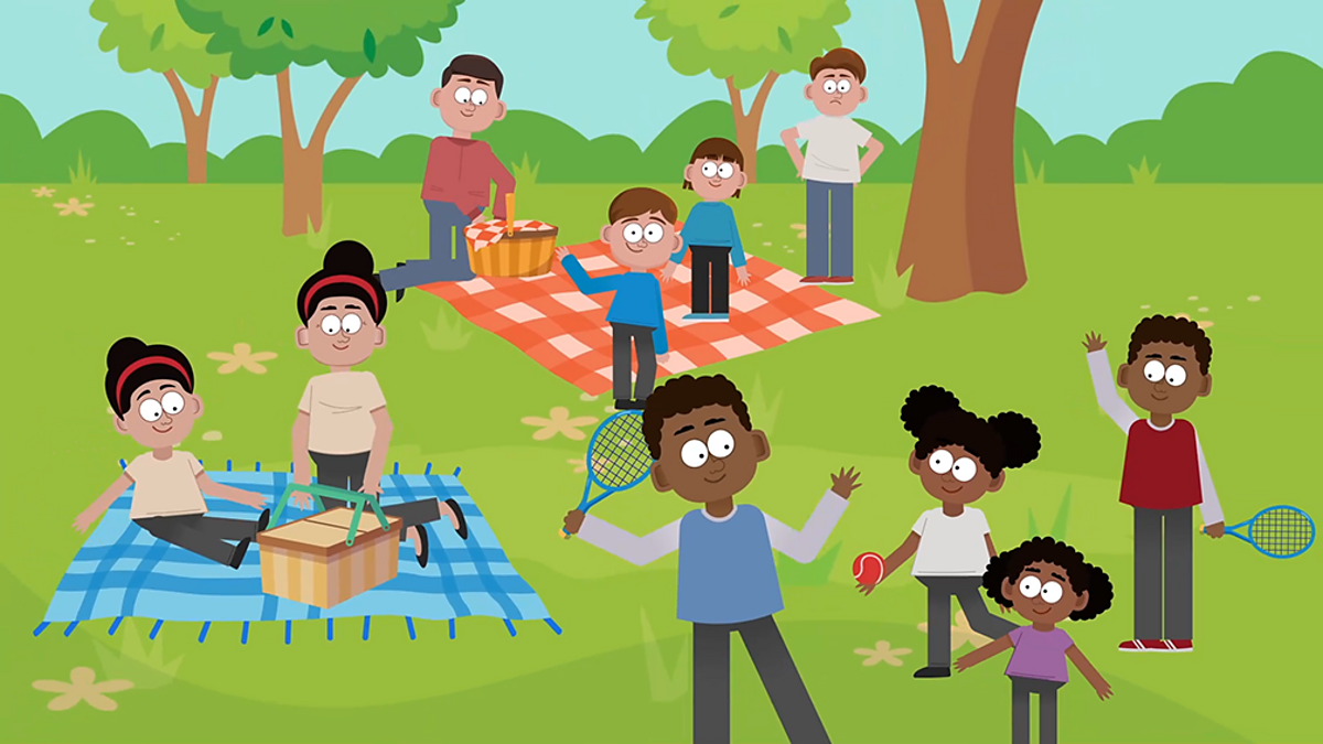 Let's go to the park to meet the children's fantastic families. Who will be there enjoying a day out in the sunshine?