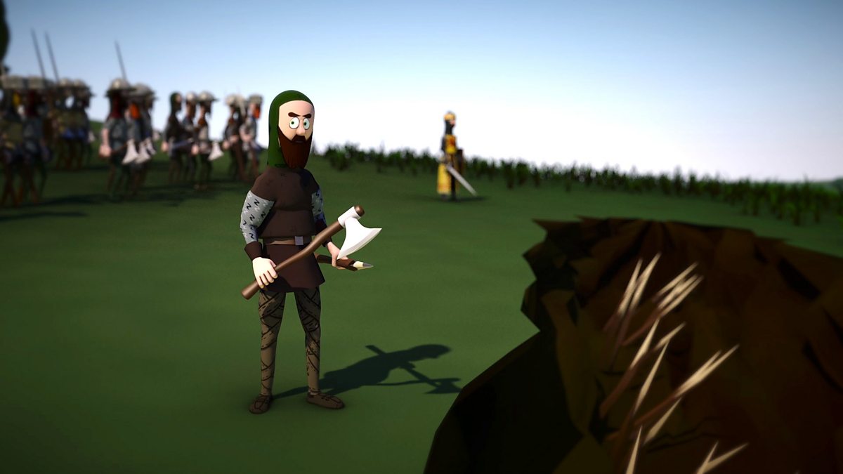 Image caption, Bruce positioned his army at the top of a hill. It had boggy ground on either side that the English knights couldn't go around. They would have to charge straight at them.