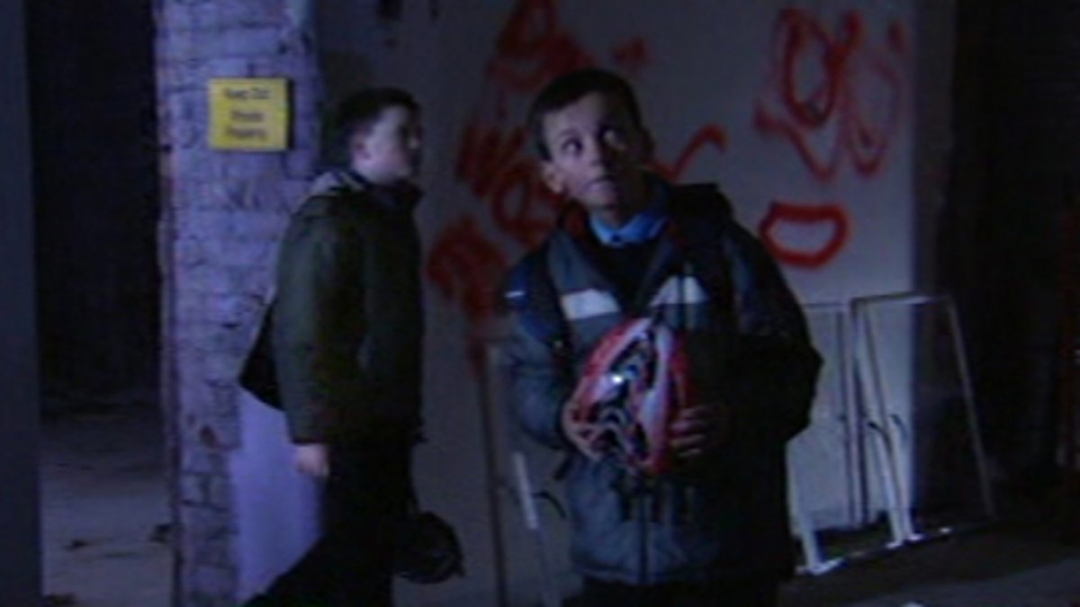 Two boys are cycling on a bridge over a busy motorway. They stop and spit water on to the road below. A van is seen braking sharply and nearly losing control. The boys enter a secret hideaway on private property. One of them breaks a pane of glass in a window to scare his friend. The presenter asks if the boys have broken any laws. He explains that their parents could be fined for them ‘skiving off’ school. He also points out that you can be charged by the police for smashing windows. He leaves the viewers to decide whether spitting water off a motorway bridge is against the law.