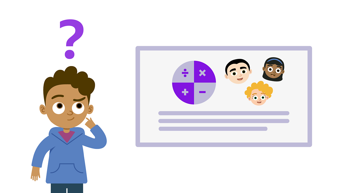 Example: ‘A farmer has 45 cows and 150 sheep. He wants to put his sheep into 3 equal fields. How many sheep will be in each field?’