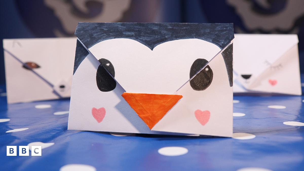 Penguin: fold the top half of the square under to make a triangle. Polar bear: Fold a little of the square down to make a diamond shape.