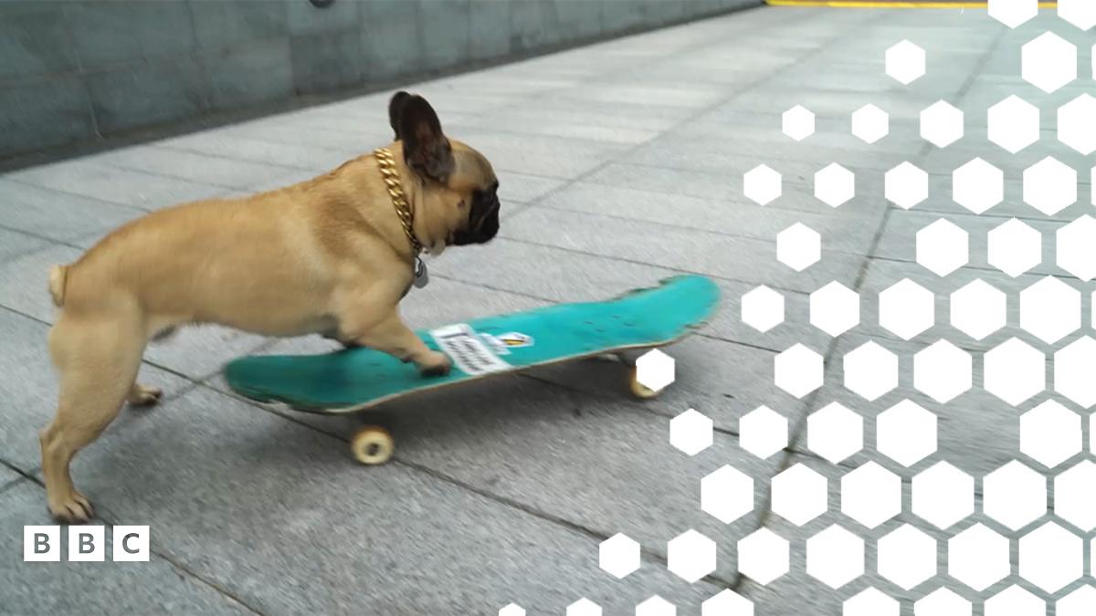 Eroc the skateboarding dog
