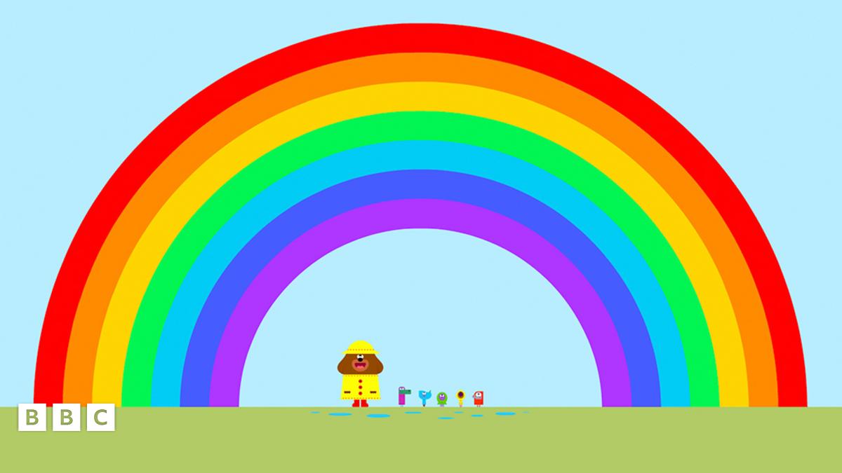 Collect lots of colourful items to build a rainbow with red, orange, yellow, green, blue, indigo and violet things.