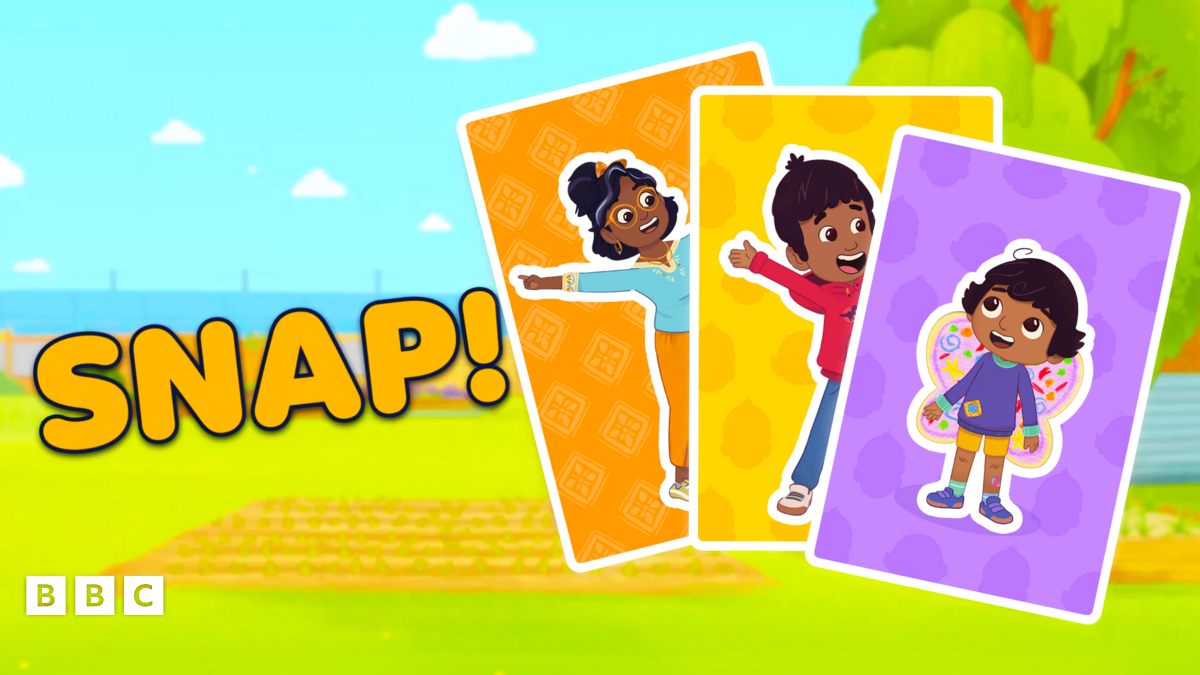 Play snap with Nikhil, Jay and the whole family! Wait for the cards to spin over and when you see the matching card say snap and double click the correct card!