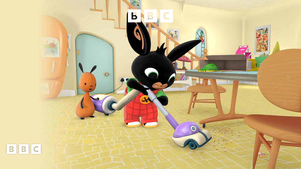 Round the corner not far away, After having a climbo and knocking over the box of Krispos, Bing and Flop are cleaning up with Voo Voo. However what will happen when Voo Voo sucks up Bing’s speedy car.