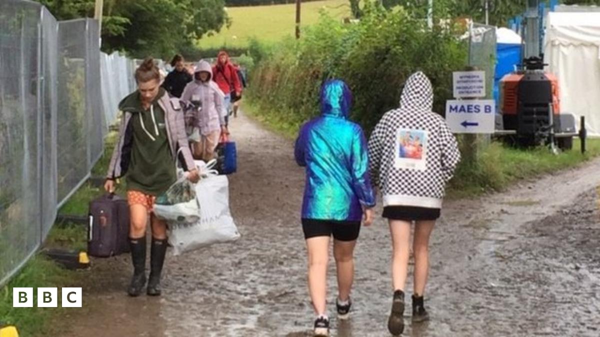 Fe ddaeth hynny oherwydd bod rhybuddion melyn am wynt a glaw mewn grym yn yr ardal ar gyfer diwedd y Brifwyl.