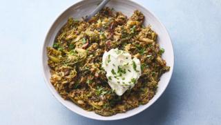 Caramelising cabbage creates a delicious side dish for roast meats that's deeply savoury and a little bit sweet. Bacon, miso and mustard amp up the flavour even more – this is worlds away from the bland boiled cabbage you remember from school dinners.