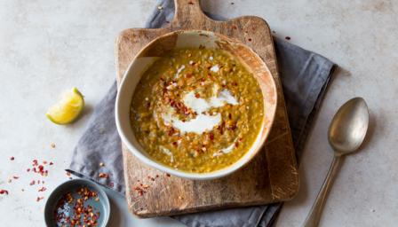 Red lentils are a wonderful storecupboard ingredient: unlike other pulses, they don’t need to be soaked before cooking. Here, they form the basis of an inexpensive, aromatic midweek vegan supper.