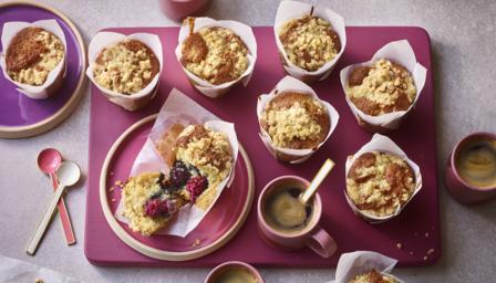 6. Divide the batter between the paper cases and scatter the top of each muffin with the crumble mixture.