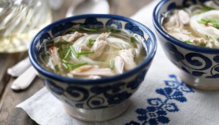 5. Serve the chicken noodle soup in bowls with the chopped chives sprinkled over.