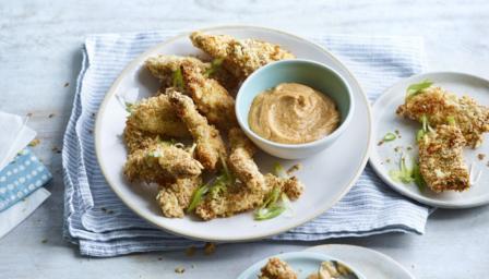 Transfer the chicken strips to a serving dish and serve with the dipping sauce.