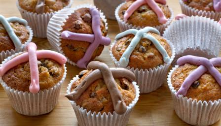 Quicker and easier to make than traditional yeast buns, Dan Lepard's Easter cupcakes have a rich ginger and spice flavour.