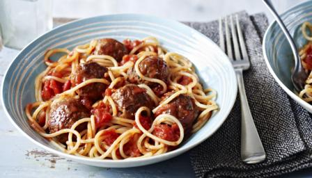 These moreish meatballs are super easy to make, top them with a simple tomato sauce and stir in some spaghetti for a quick midweek meal. Make the meatballs ahead for an even quicker cook on busy weeknights.