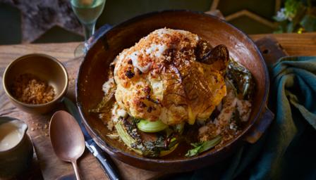 Whole roasted cauliflower cheese