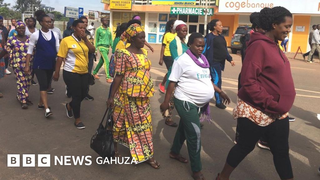 Uwizeyimana Libérée atwite inda y'amezi umunani, yari amaze gukora urugendo no kurambura umubiri hamwe n'abandi, yabwiye BBC ko ananiwe rwose ariko yumva anishimye.