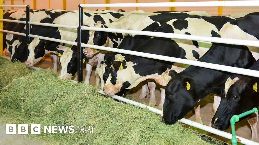 सुदूर रेगिस्तान में गायों के लिए एक एयरकंडीशंड बाड़ा, गायों का दूध निकालने के लिए मशीनें... ये नज़ारा खाड़ी के देश क़तर की एक डेयरी का है.