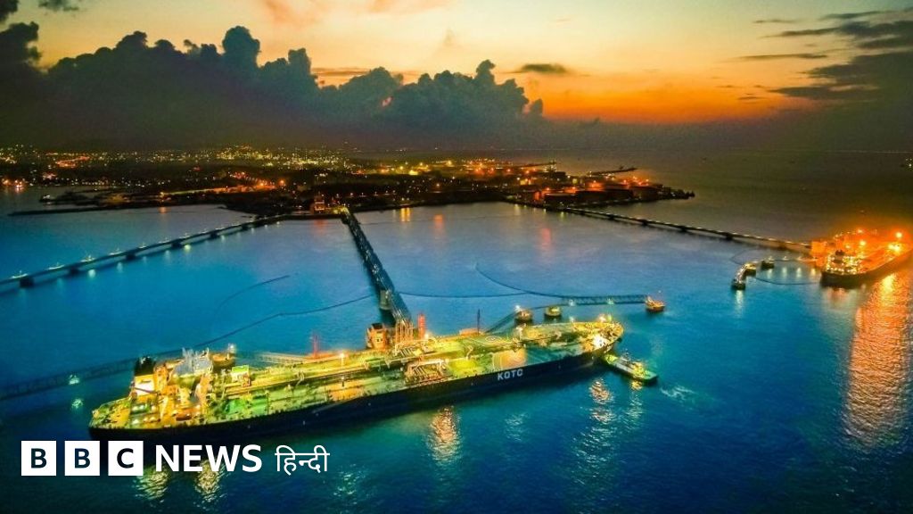 इमेज कैप्शन, पूर्वी चीन के शैनडोंग प्रांत के बंदरगाह पर एक तेल टैंकर