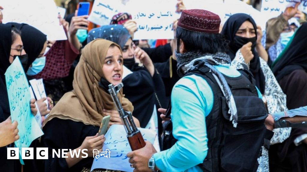 इमेज कैप्शन, काबुल में मंगलवार को हुए प्रदर्शन के दौरान फ़िल्माया गया एक वीडियो बीबीसी को भेजा गया है. इसमें तालिबान लड़ाके हवा में गोली चलाते हुए नज़र आ रहे हैं. तालिबान ने बीते हफ़्ते हवा में गोली चलाने पर पाबंदी लगा दी थी.