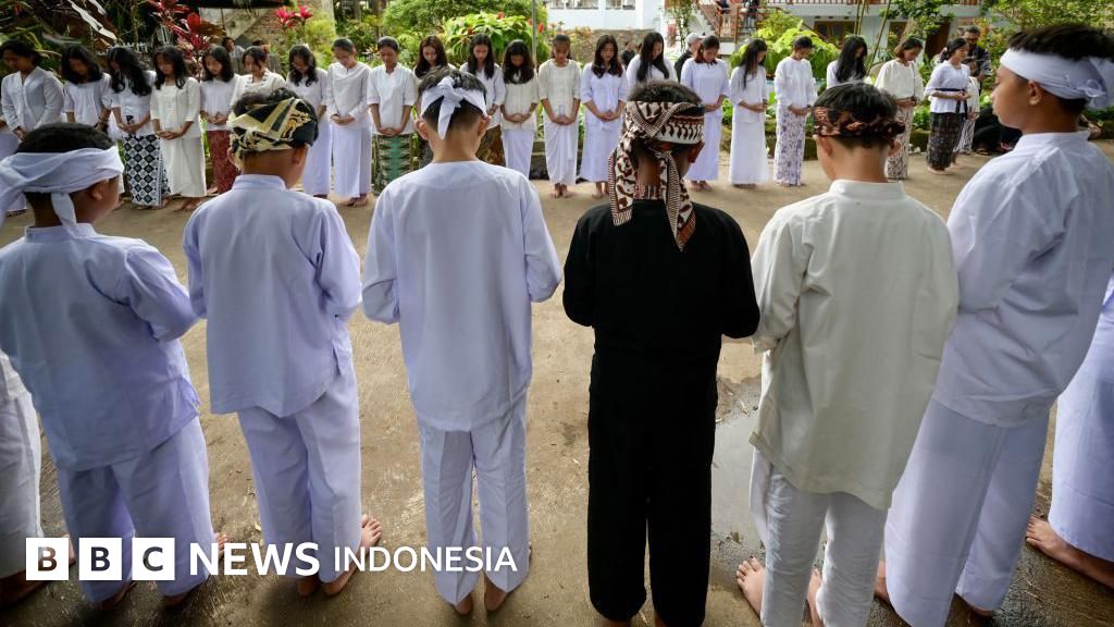Keterangan gambar, Sejumlah remaja penganut Sunda Wiwitan mengikuti ritual 'siraman' di Desa Cigugur, Jawa Barat, saat upacara Seren Taun. Sebuah riset menyebut anak-anak penghayat kepercayaan rentan menjadi target perundungan di sekolah.