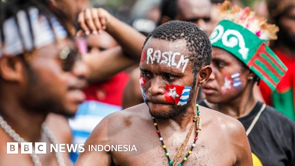 Keterangan gambar, Mahasiswa Papua mengecat wajahnya dengan warna bendera Bintang Kejora saat unjuk rasa di Jakarta, Indonesia, pada 28 Agustus 2019. Mereka menuntut kasus pelecehan rasial terhadap mahasiswa Papua di Surabaya, Jawa Timur.