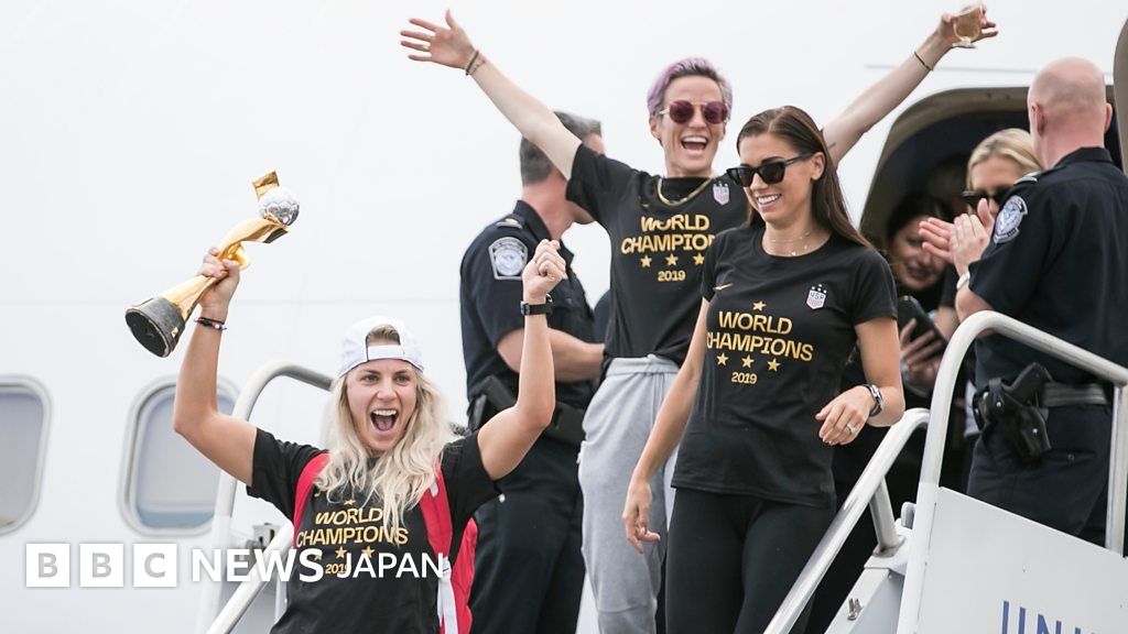 女子サッカーW杯で4度目の優勝を果たしたアメリカ代表チームが8日、優勝杯を手に帰国した。