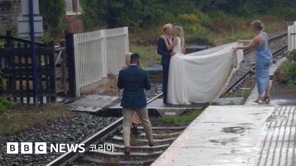 철로 위에서 웨딩 사진 찍은 커플에 철도 당국 '어리석다'