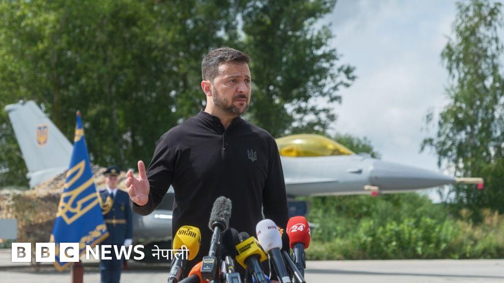 "एफ-१६ युक्रेनमा छ। अब हामीसँग छ," नाम नखुलाइएको एउटा सैन्य विमानस्थलमा दुइटा विमानअगाडि उभिएका जेलेन्स्कीले भने।