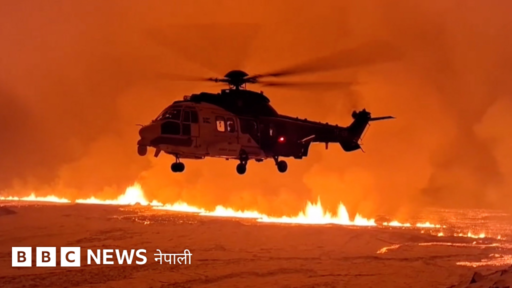 आइसल्यान्डमा शक्तिशाली ज्वालामुखी विस्फोट हुँदाको दृश्य