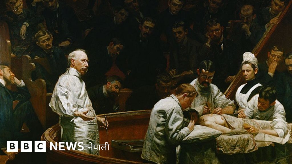 तस्बिरको क्याप्शन, सन् १८७५ मा टमस एकिन्सले बनाएको 'द ग्रस क्लिनिक'। यो हात धुने चलन सुरु हुनुभन्दा अघिको चित्र हो