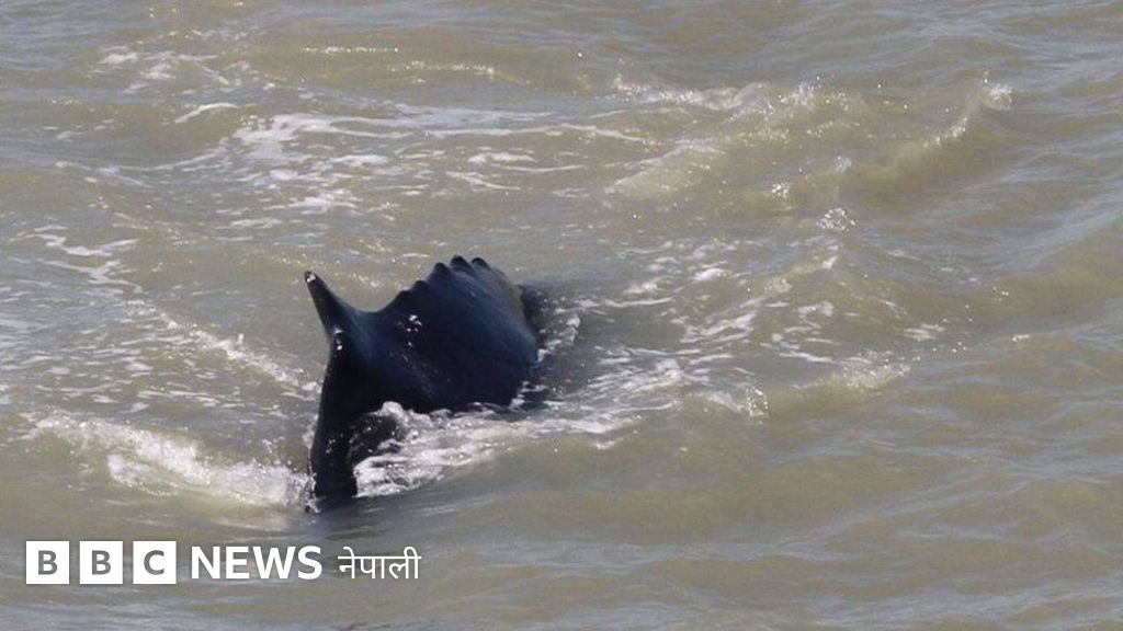 स्थानीय बासिन्दाले नदीको घुमाउरो बाटोमा ह्वेल पौडिरहेको देखेर रमाइलो मानेका थिए।