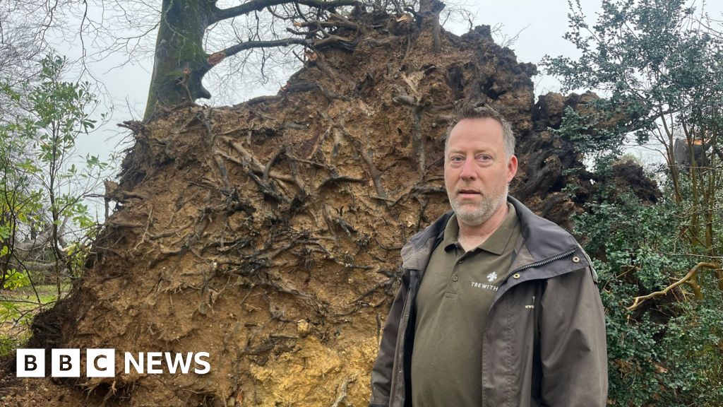 BBCSome of Cornwall's historic gardens have been decimated by Storm Goretti, with many trees brought down.