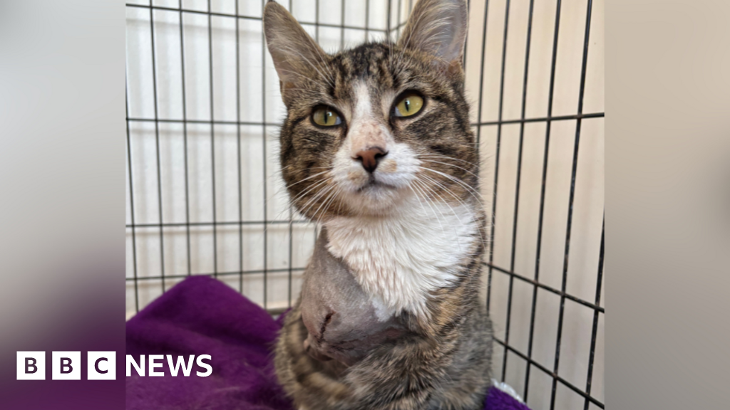 Simba the cat was taken to Drove Veterinary Hospital in Royal Wootton Bassett, Wiltshire, where he had to undergo surgery to have his leg amputated.