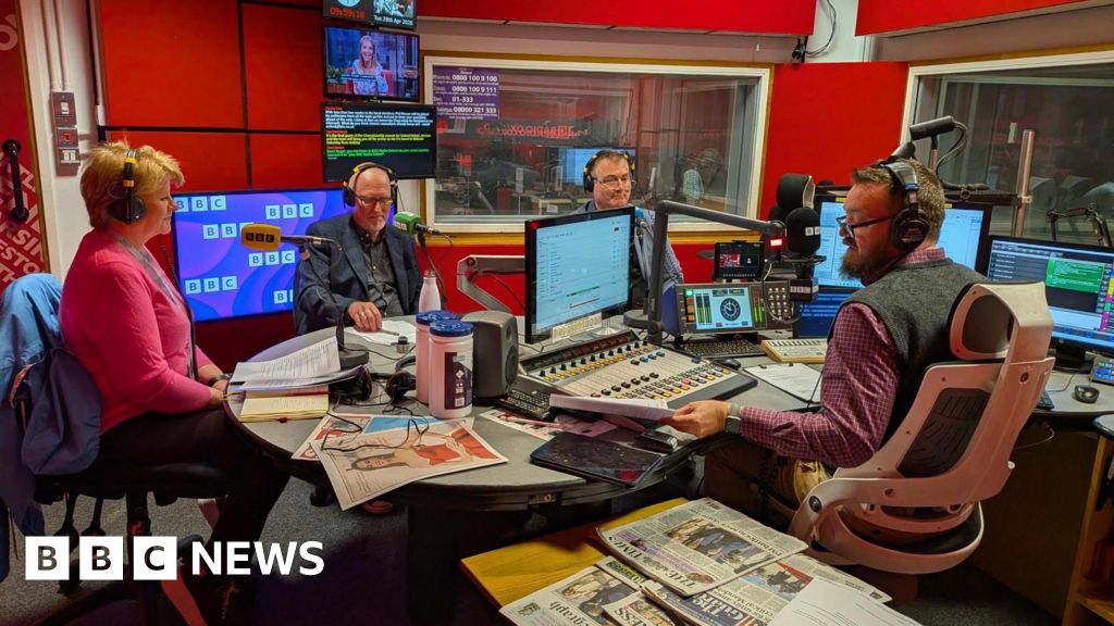 BBC Three politicians sat in a radio studio opposite the presenter.BBC