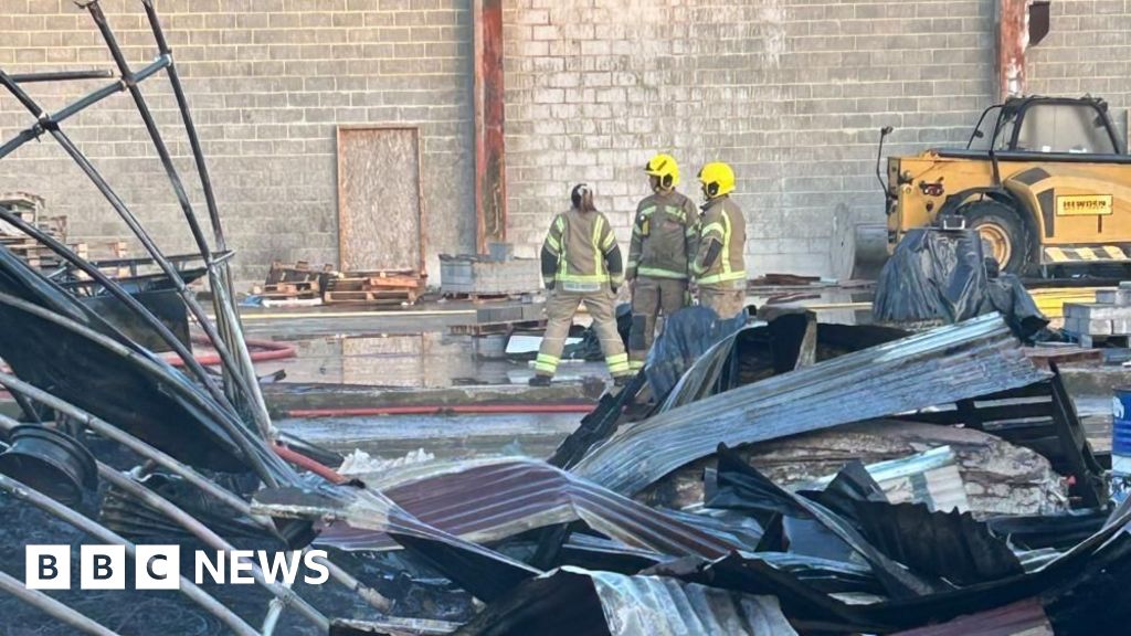 A large fire at a former industrial unit has burned overnight after loud explosions were heard.