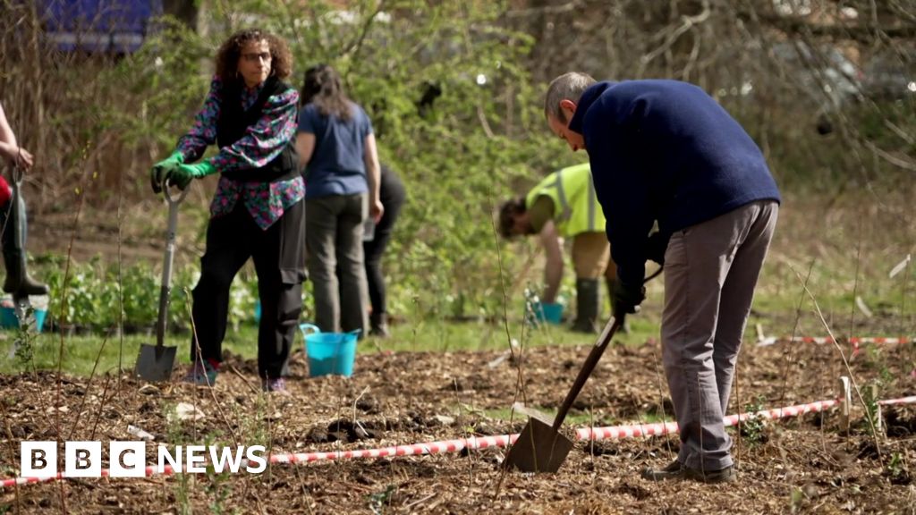 BBCHundreds of volunteers have planted three "tiny forests" in north London in a day.