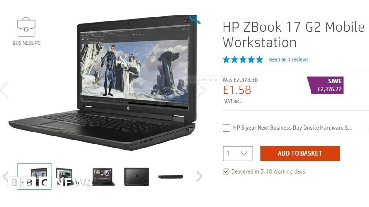 HP has apologised after an error on its website let shoppers buy expensive laptop computers for less than £2.