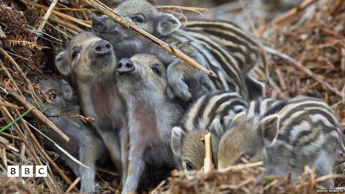 These wild boar piglets have been spotted in the Forest of Dean