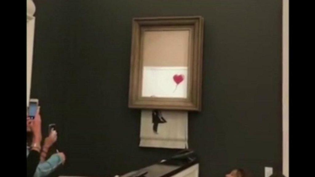 WATCH: Banksy artwork shredded at auctionTo play this video you need to enable JavaScript in your browser.This video can not be playedWATCH: Banksy artwork shredded at auctionCloseAn artwork by Banksy shredded itself after it was auctioned for more than £1m by Sotheby's in London.Published6 September 2021Read description