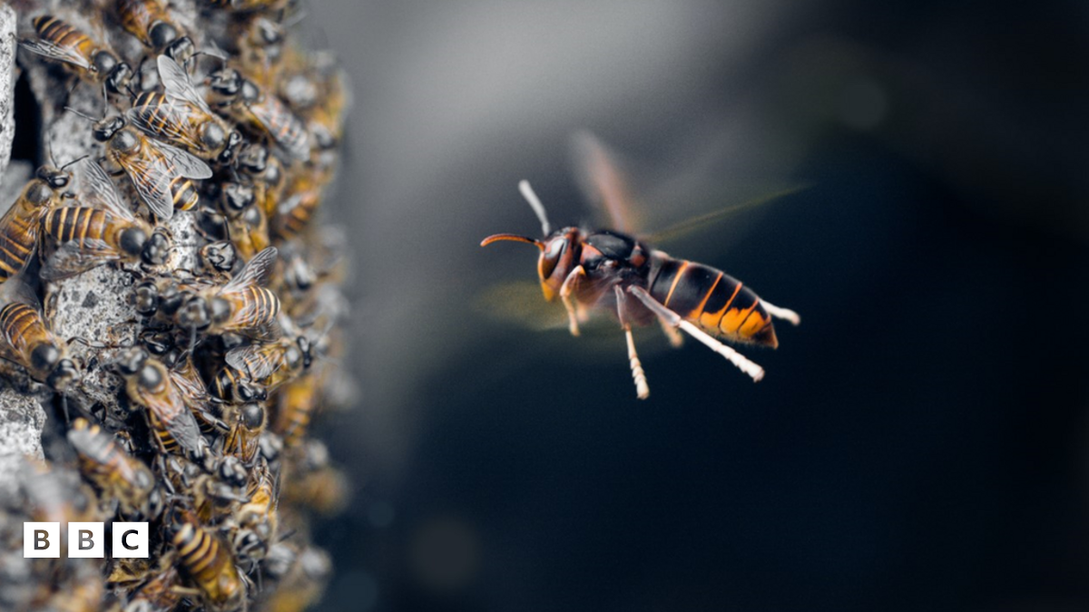 Asian hornets, also known as 'murder hornets', can destroy a honeybee hive in a matter of hours.