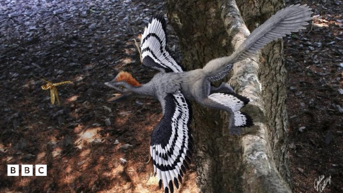 Anchiornis huxleyi is a feathered dinosaur with this image made based on fossils found in China dating from the Jurassic