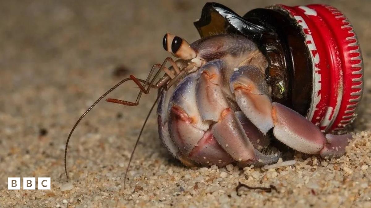 Hermit crabs are using plastic objects like bottle caps as shelters