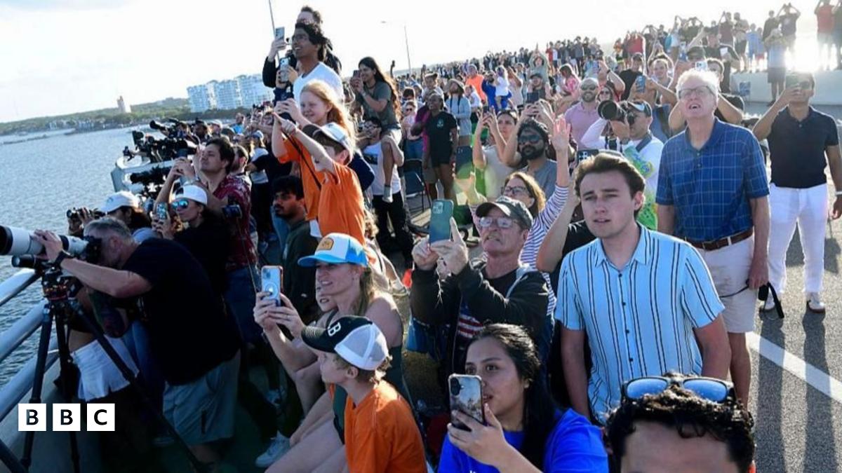 Thousands of people gathered at viewing locations around the Kennedy Space Center in Florida to watch the launch